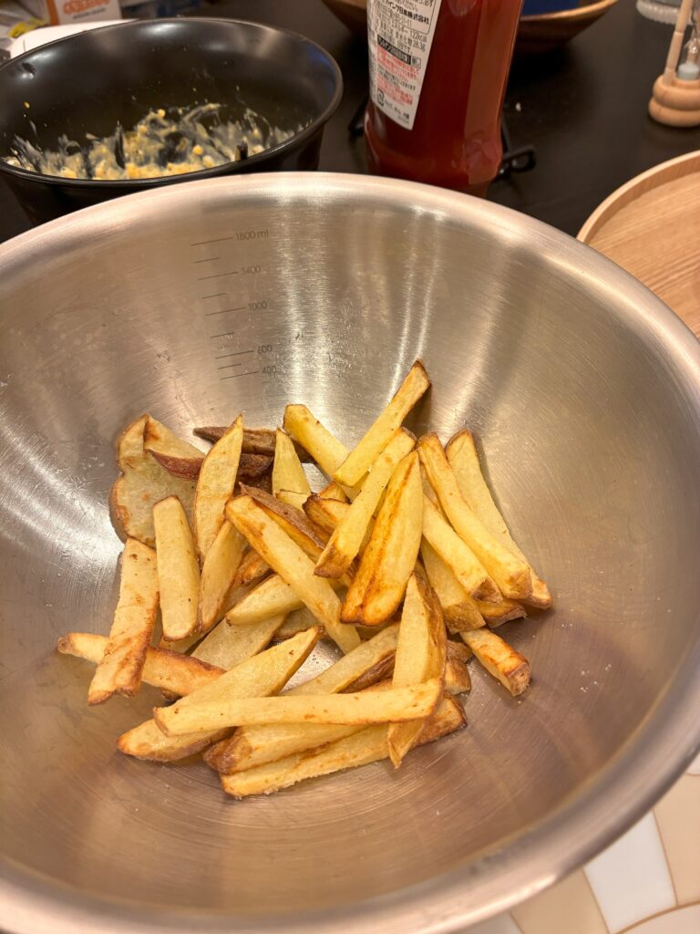 揚げた直後のバスケットの中ではいい感じだったのですが,取り出すときに崩れて写真だと何だかわからないですね.