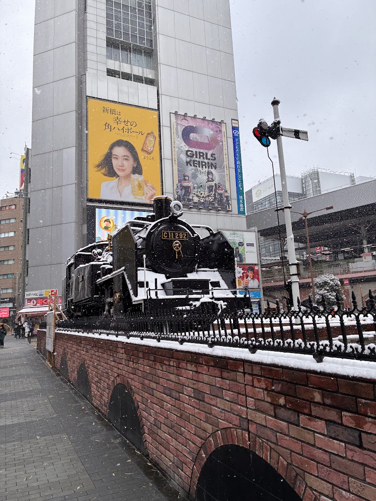 今日は用事で外出しておりましたが,雪の中の新橋SL広場を撮ってきました.